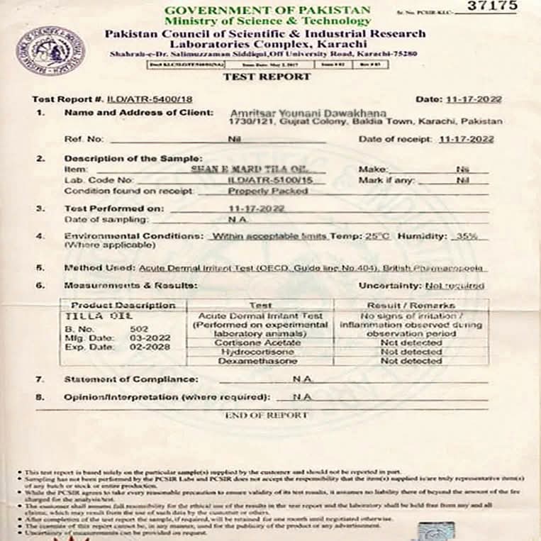 Our product has been thoroughly tested by a government approved laboratory in Pakistan for acute dermal irritation and the presence of harmful steroids.
